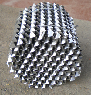 SV單元是由一定規格的波紋板組裝而成的圓柱體,它的技術性能:最高的分散程隆為1—2um,液—液相及氣—氣相的不均勻度系數為